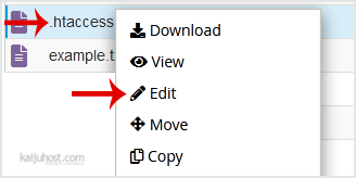 6. Right-click on the .htaccess file and then on Edit in the Context Menu.