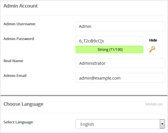 - Admin Email: Your e-mail address. (Useful for administrator account password reset, notification, etc.)