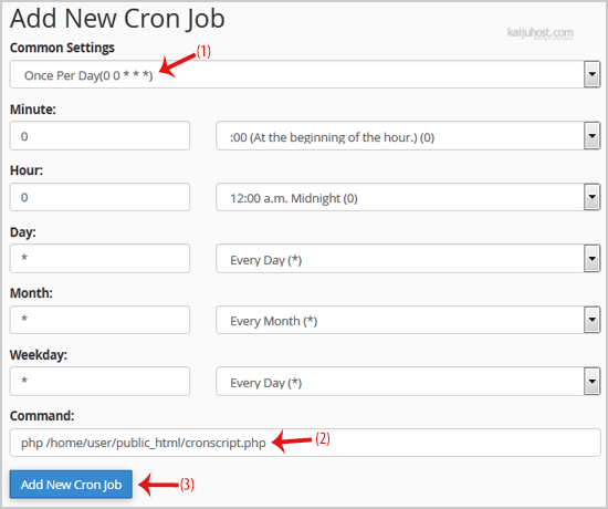 3. Under Add New Cron Job, click on the Common Settings dropdown menu and select an appropriate option such as Once Per Day or another suitable option.